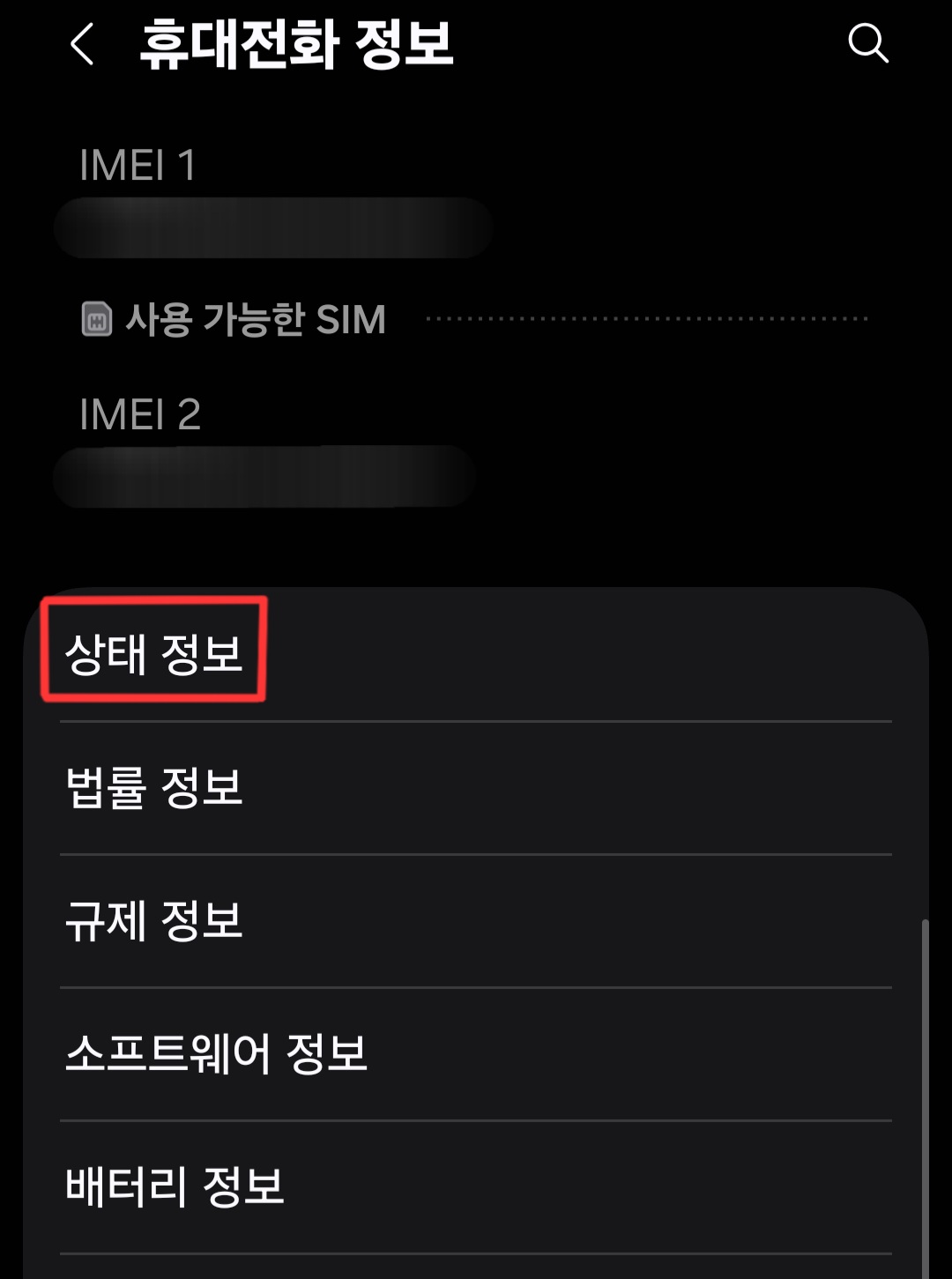 [설정] - [휴대전화 정보] - [상태 정보] 메뉴로 들어갑니다.