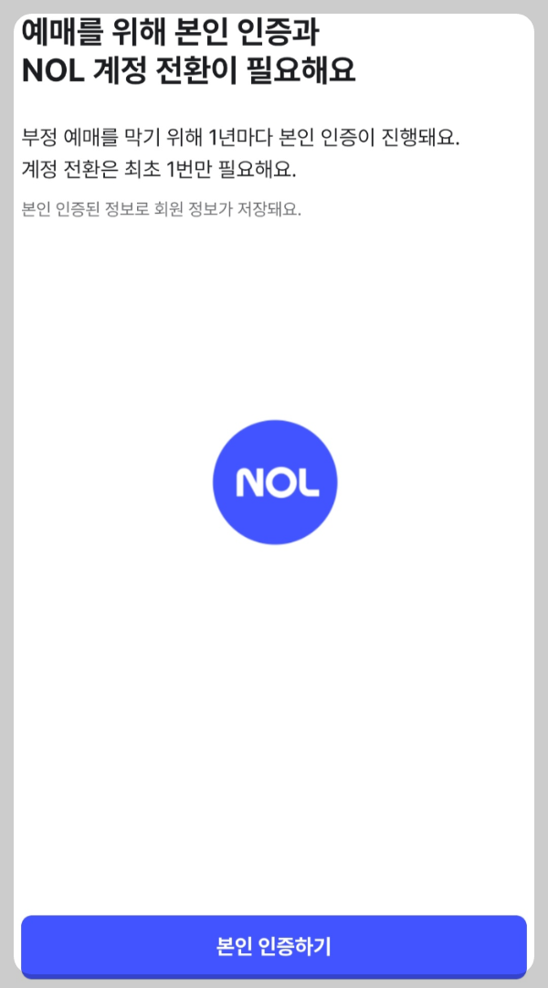 첫 이용이라면 NOL 계정 전환 및 본인인증을 완료해 놓아야 실시간으로 빠르게 진행해야 하는 티켓팅 과정에서 변수를 줄일 수 있습니다.